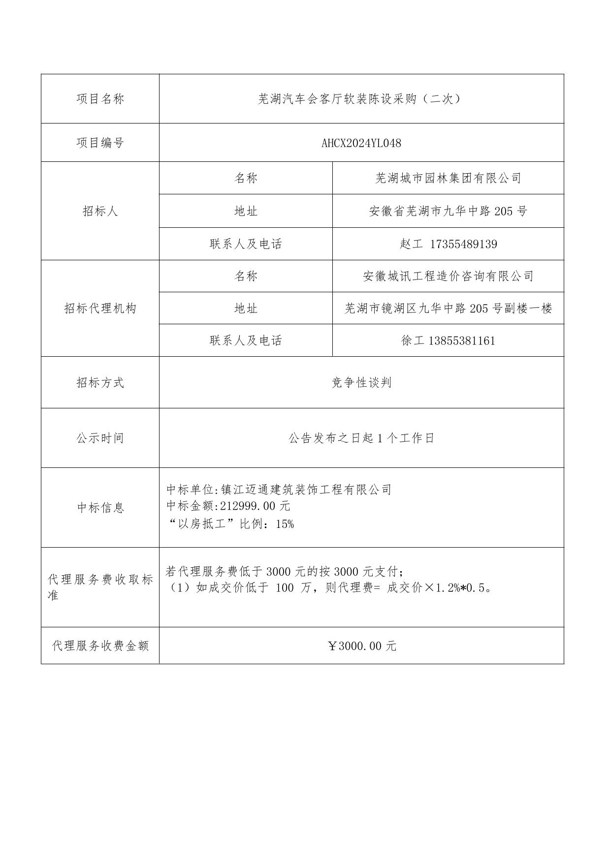 蕪湖汽車會客廳軟裝陳設(shè)采購(二次)成交結(jié)果公告