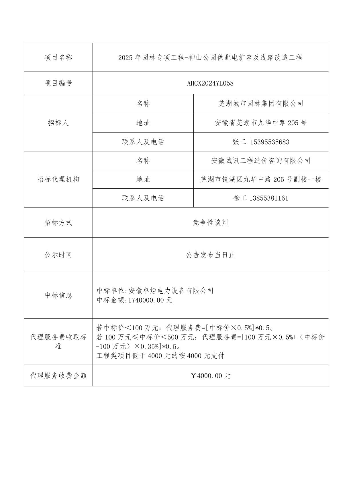 2025年園林專項(xiàng)工程-神山公園供配電擴(kuò)容及線路改造工程中標(biāo)結(jié)果公告