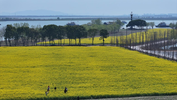在春日溫暖的陽光下,惠生聯(lián)圩和美鄉(xiāng)村披上了金黃色的外衣,這片世外桃源的油菜花海成為了大自然最動(dòng)人的畫作。站在大龍灣沙灘上遠(yuǎn)眺,無邊無際的金黃盡收眼底,仿佛天地間一幅色彩斑斕的油畫。