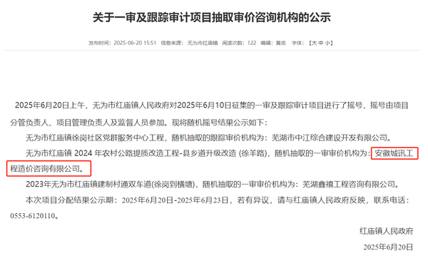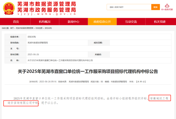近日,城訊公司憑借卓越的綜合實力、專業(yè)的團隊以及不懈的努力,連中兩標,分別是無為市紅廟鎮(zhèn)2024年農(nóng)村公路提質(zhì)改造工程-縣鄉(xiāng)道升級改造(徐羊路)一審審價、2025年蕪湖市直窗口單位統(tǒng)一工作服采購項目招標代理。