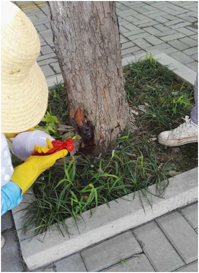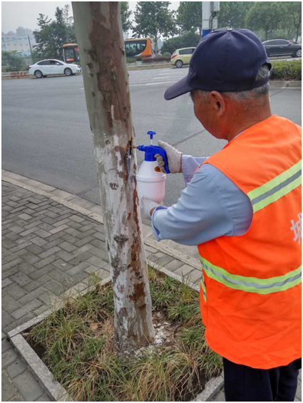 集團(tuán)公司立即采取了防治措施:首先針對(duì)剛剛羽化的成蟲,在成蟲活動(dòng)頻繁的樹干及周圍,噴施天牛星微膠囊劑;其次針對(duì)幼蟲進(jìn)行了蟲孔注射藥劑和樹體殺蟲處理。