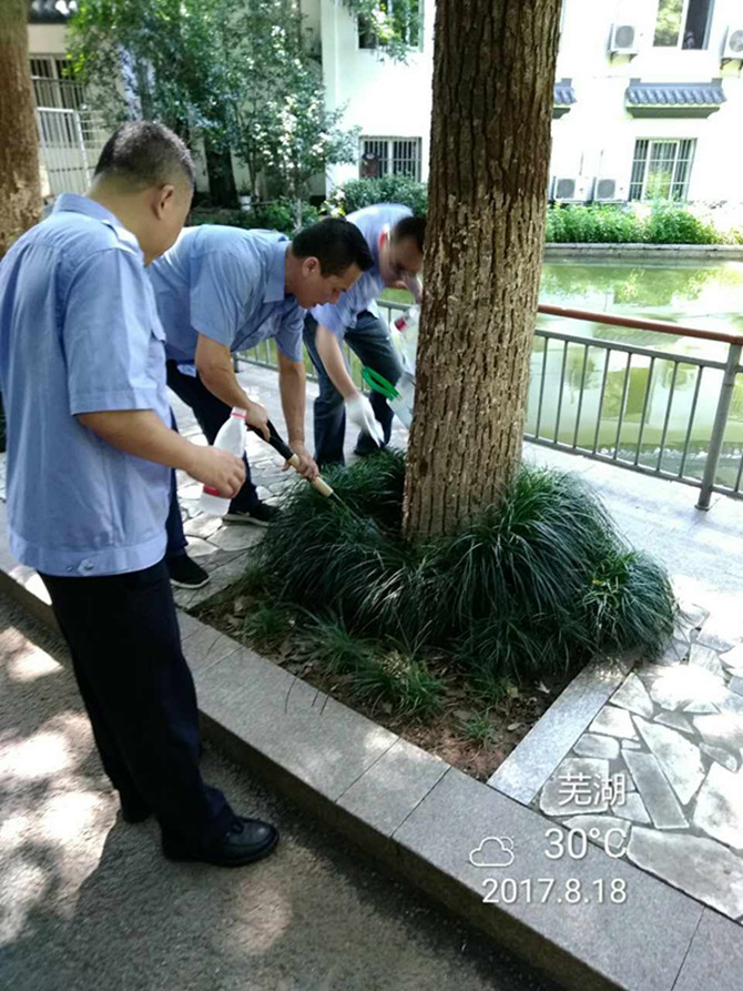 白蟻防治所工作人員到達(dá)現(xiàn)場后,告訴大家,近期受天氣影響,白蟻活動(dòng)頻繁,必須立即對(duì)白蟻進(jìn)行施藥處理,施藥后,保潔及時(shí)對(duì)地面殘留的藥物進(jìn)行沖洗。隨后,白蟻防治所工作人員檢查了公園其它地方,發(fā)現(xiàn)了有少量白蟻,于是工作人員立即在樹根下埋誘餌包進(jìn)行白蟻防治,并表示9月份將對(duì)公園白蟻防治情況進(jìn)行復(fù)查。
