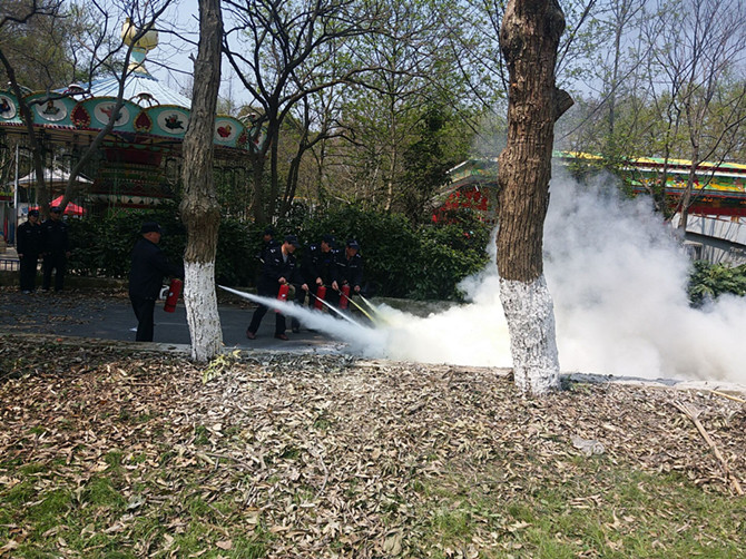 為加強(qiáng)公園的安全管理,提高員工的安全防范意識(shí),掌握對(duì)突發(fā)火災(zāi)的應(yīng)變、逃生技能,學(xué)會(huì)滅火,確保游客和員工生命安全及財(cái)產(chǎn)安全,2018年3月26日上午,古建公司分管安全副經(jīng)理張波同志帶領(lǐng)全體保安在赭山公園開(kāi)展消防演練活動(dòng)。