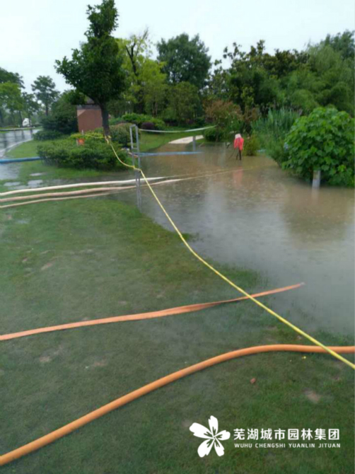 截至目前為止,鏡湖公園大小碼頭每天對每條游船進行兩次排水工作,確保游船安全。同時對公園內(nèi)積水的觀景橋、亭臺等設置警戒線并進行強排。神山公園內(nèi)積水已經(jīng)排除,雕塑公園一期水塘水位暴漲,已安排排水泵強排。中央公園、扁擔河公園受扁擔河水倒灌影響,水位扔超過園內(nèi)主路,園林集團已在公園各入口設置警戒線,封閉公園并安排保安加強巡邏;中央公園車庫兩個入口均已安排設置防水土坡,防止河水倒灌中央公園車庫。九蓮塘公園仍舊水位較高,九曲橋和二號親水平臺封閉,園林集團安排專人每隔一段時間對出水口進行一次清理,保證排水暢通。