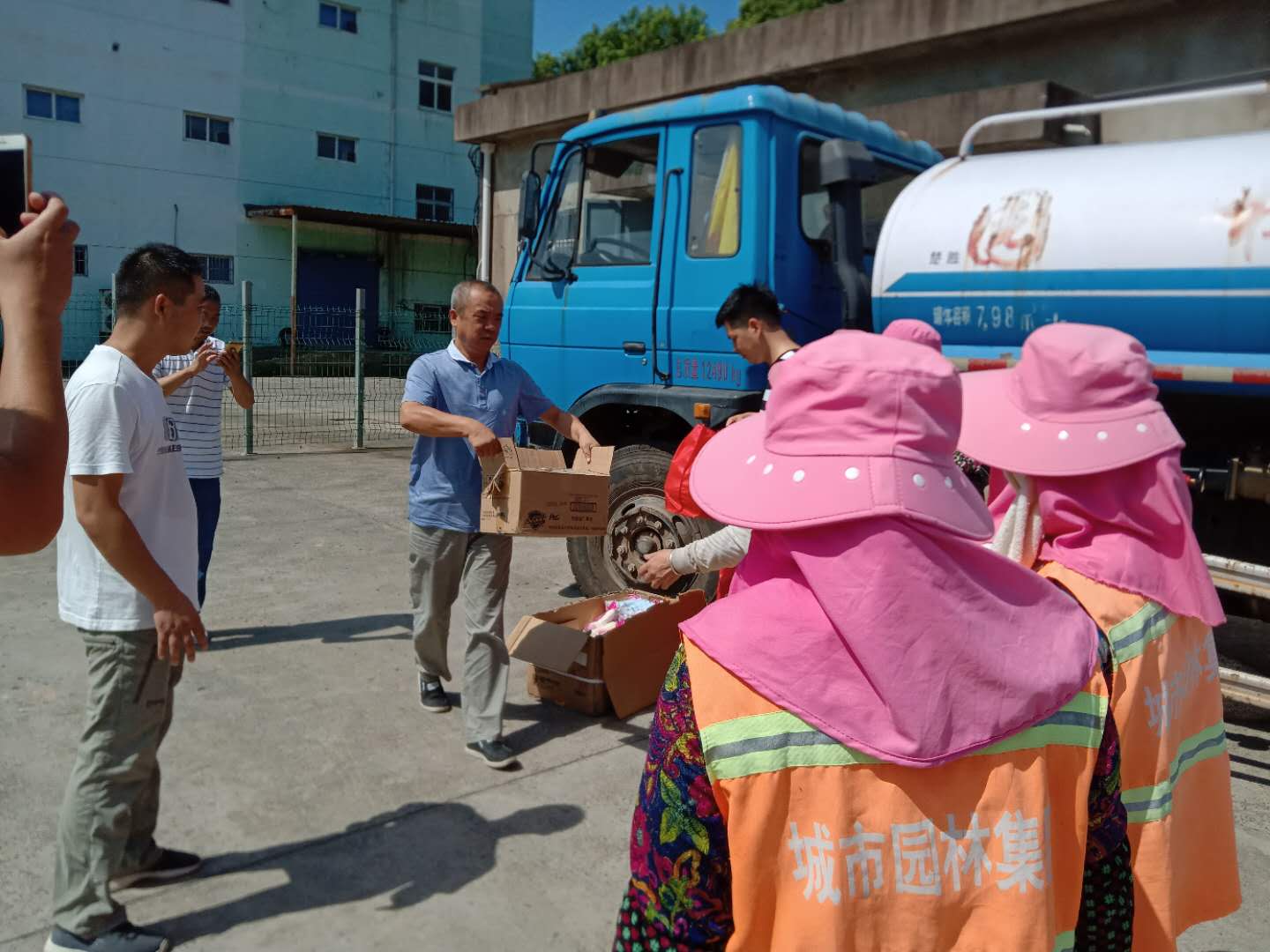 7月30日,集團(tuán)公司童朝陽董事長、程怡副書記、李琦副總經(jīng)理、曹慧副總經(jīng)理、王軍副總經(jīng)理、紀(jì)委書記江守清同志帶領(lǐng)相關(guān)人員,準(zhǔn)備了肥皂、毛巾、人丹、風(fēng)油精等防暑降溫物品,慰問戰(zhàn)斗在綠化一線的工人們。