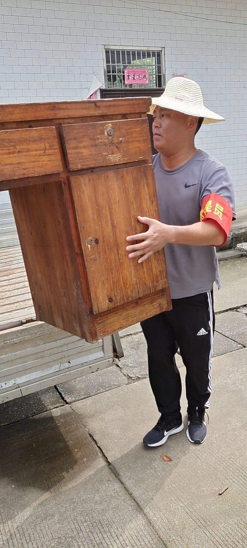 7月29日下午,在完成巡堤查險任務(wù)后,接到當(dāng)?shù)卣笾枰藛T幫助受困群眾搬運(yùn)家具,撤離隱患地區(qū),隊員李勇不顧疲勞、主動請纓,妥善完成工作任務(wù)。
