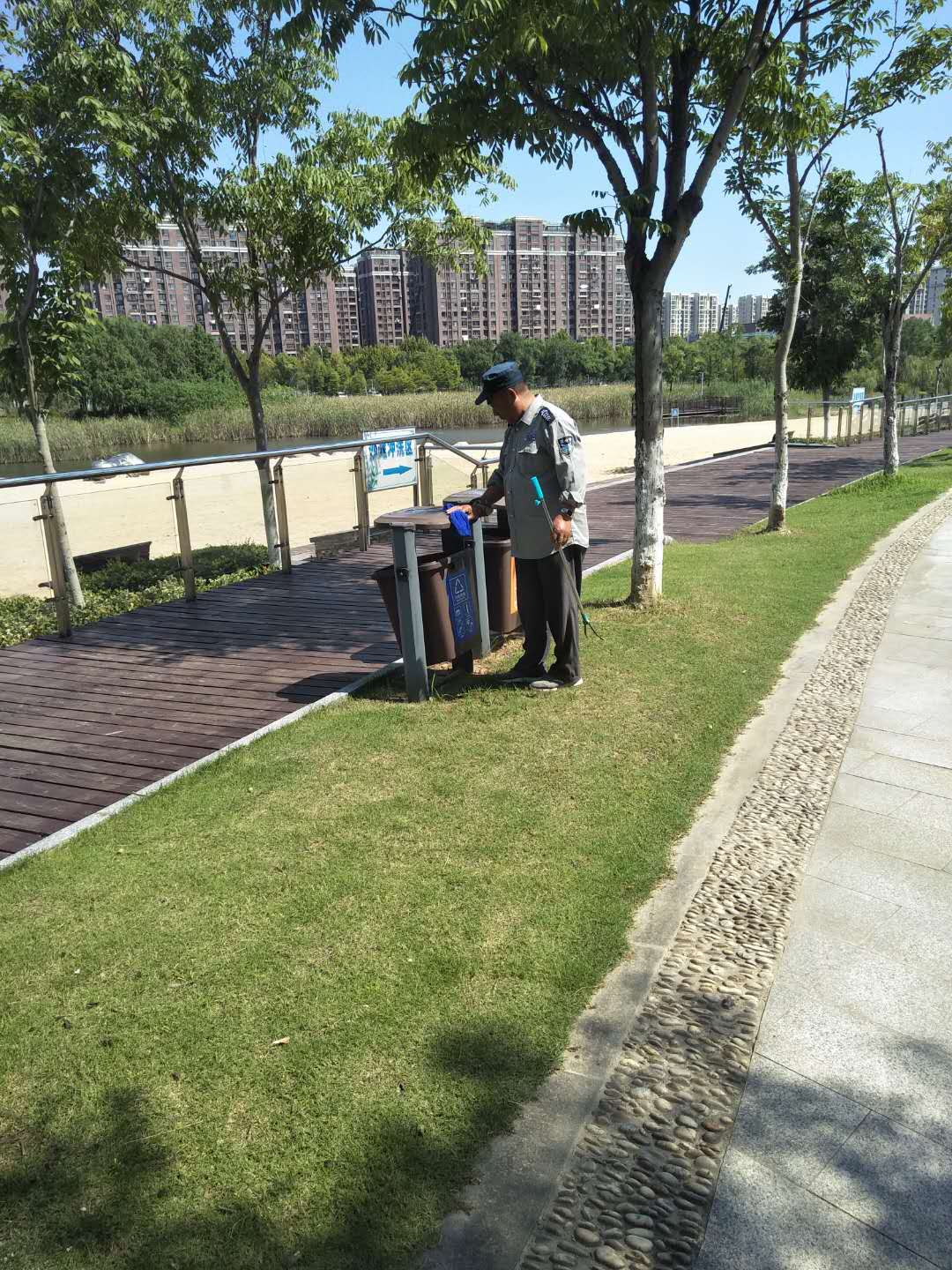 保潔人員將本職工作范圍內(nèi)的公廁、路面及亭臺(tái)座椅等清掃干凈,不留死角,保證干凈整潔無污染無異味;雜物統(tǒng)一歸放、損壞設(shè)施及時(shí)報(bào)修、警示標(biāo)牌等保持清潔;園區(qū)各處死角及垃圾桶每日清理。保安人員均按要求統(tǒng)一著裝上崗,穿戴整齊,對(duì)待游客使用文明用語;同時(shí),也加強(qiáng)了園區(qū)內(nèi)的治安巡邏,對(duì)游客攀爬雕塑、攀折樹枝、寵物入園、水域嬉戲等不文明不安全的行為進(jìn)行勸導(dǎo)和制止。