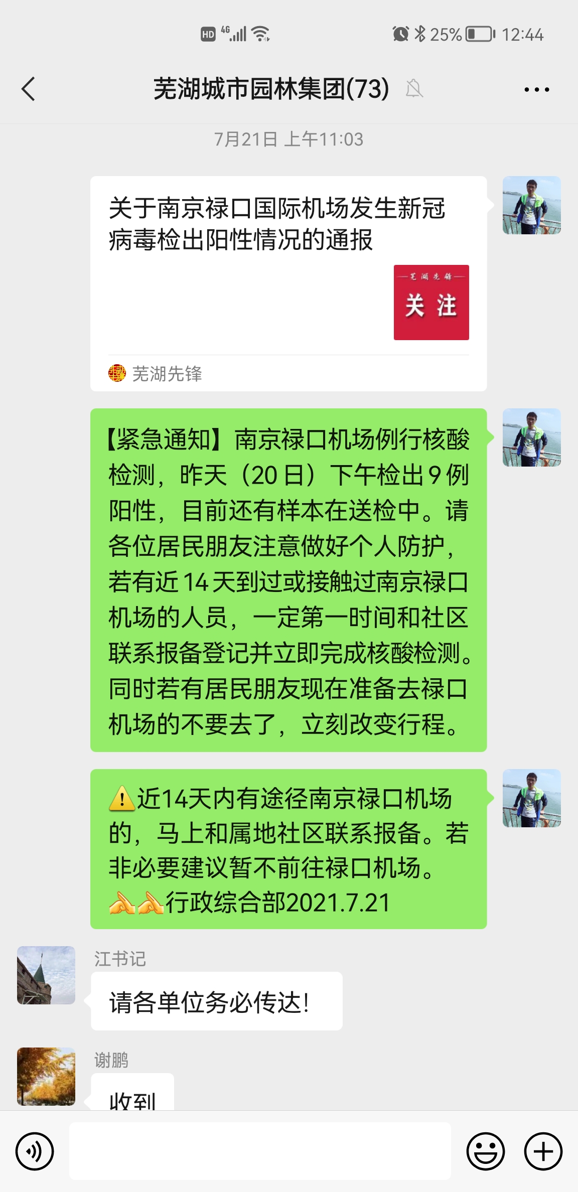 一是下發(fā)緊急通知,7月21日開(kāi)始排查全體職工及其親屬近14天有無(wú)到過(guò)或接觸過(guò)南京祿口機(jī)場(chǎng)的人員,做到第一時(shí)間和社區(qū)聯(lián)系報(bào)備登記并立即完成核酸檢測(cè),各子公司及分公司嚴(yán)格執(zhí)行疫情防控情況每日一報(bào)制度。