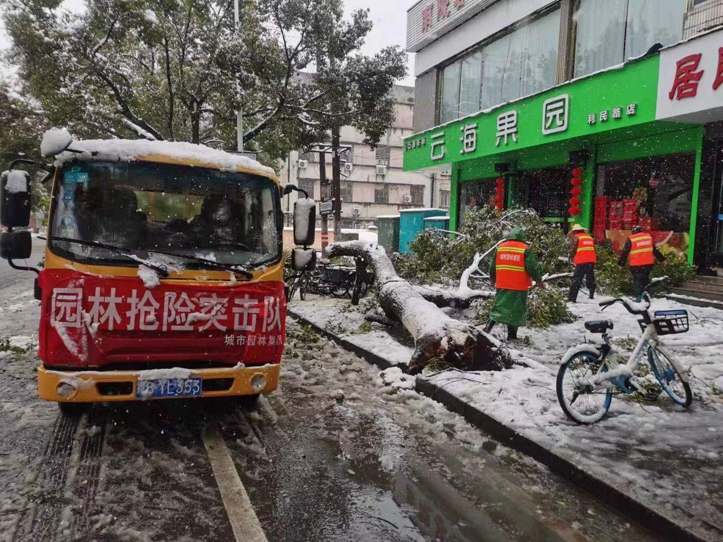 由于積雪負(fù)荷過(guò)重極易壓垮樹枝,存在安全隱患,蕪湖城市園林集團(tuán)有限公司組織由七個(gè)除雪應(yīng)急突擊隊(duì)分組推進(jìn),對(duì)各公園、道路、綠地等進(jìn)行清雪工作,并對(duì)各類設(shè)施、設(shè)備進(jìn)行安全檢查,利用竹竿敲打行道樹及綠化帶內(nèi)的積雪,及時(shí)清理管轄區(qū)域內(nèi)傾斜、倒伏的樹木和斷枝,安排人員不間斷進(jìn)行巡視、檢查,重點(diǎn)對(duì)公園、廣場(chǎng)出入口及主要園路、石橋上的冰雪進(jìn)行清除,對(duì)可能產(chǎn)生的安全隱患及時(shí)處理。
