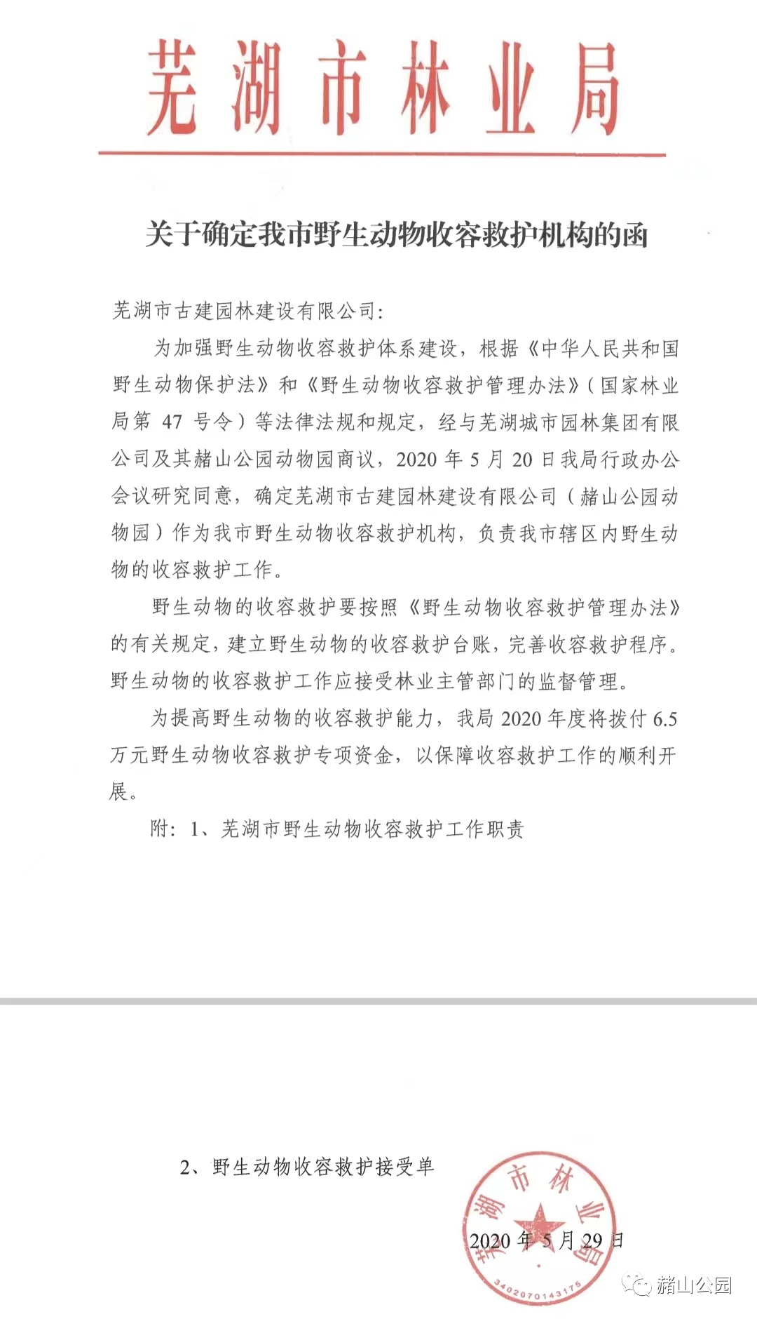 2020年5月20日,經蕪湖市林業(yè)局行政辦公會議研究確定,蕪湖市野生動物收容救助隊成立。