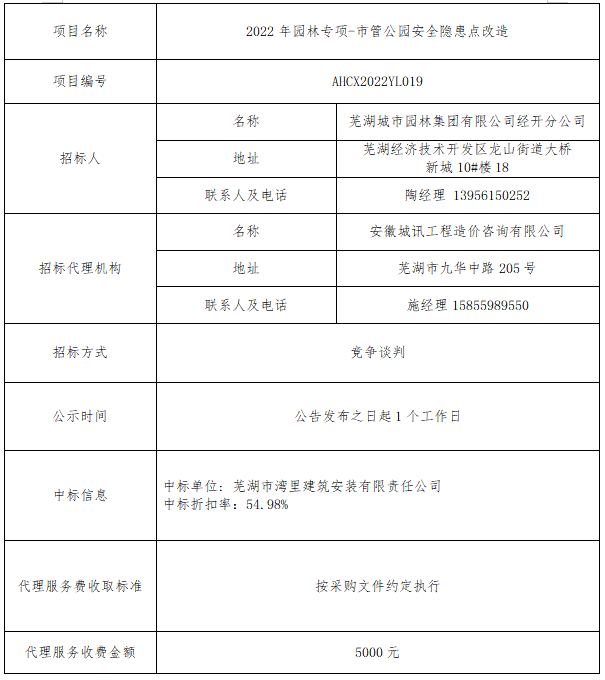 2022年園林專項(xiàng)-市管公園安全隱患點(diǎn)改造 中標(biāo)公告