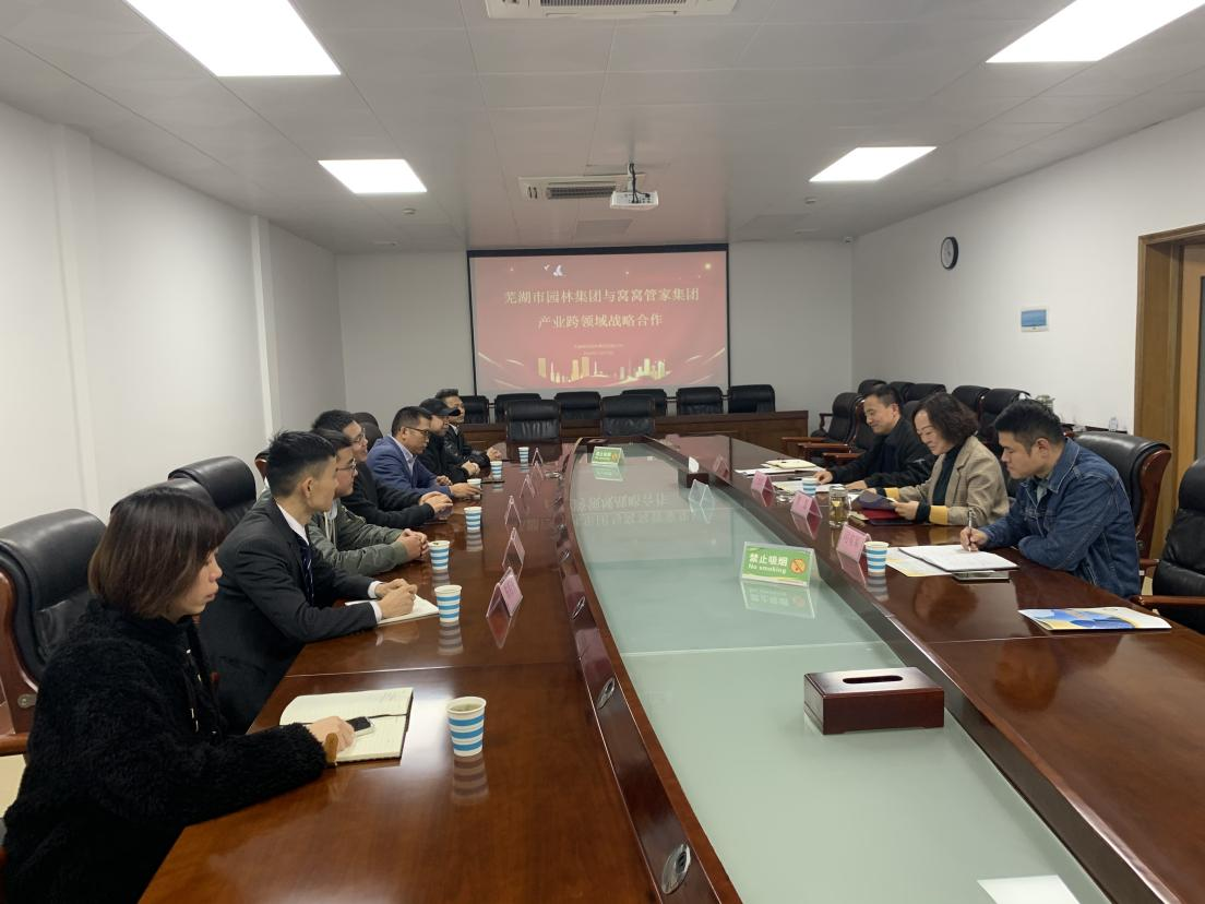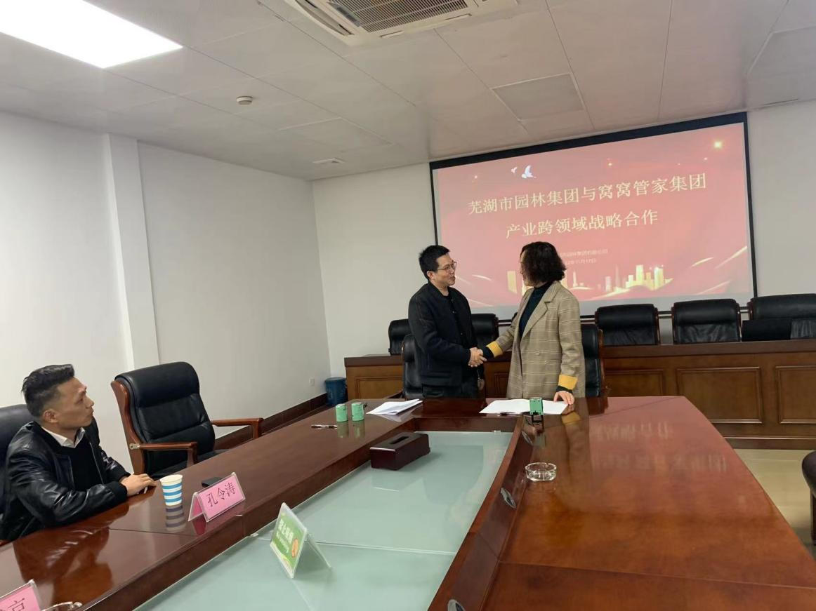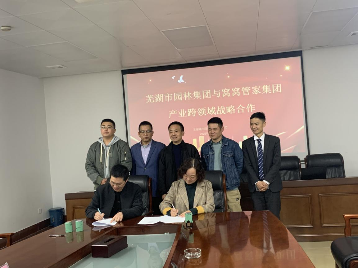 11月17日下午,蕪湖城市園林集團(tuán)與窩窩管家集團(tuán)在集團(tuán)會(huì)議室簽署戰(zhàn)略合作協(xié)議,集團(tuán)公司副總經(jīng)理曹慧、盧夢(mèng)汀參加簽約儀式。