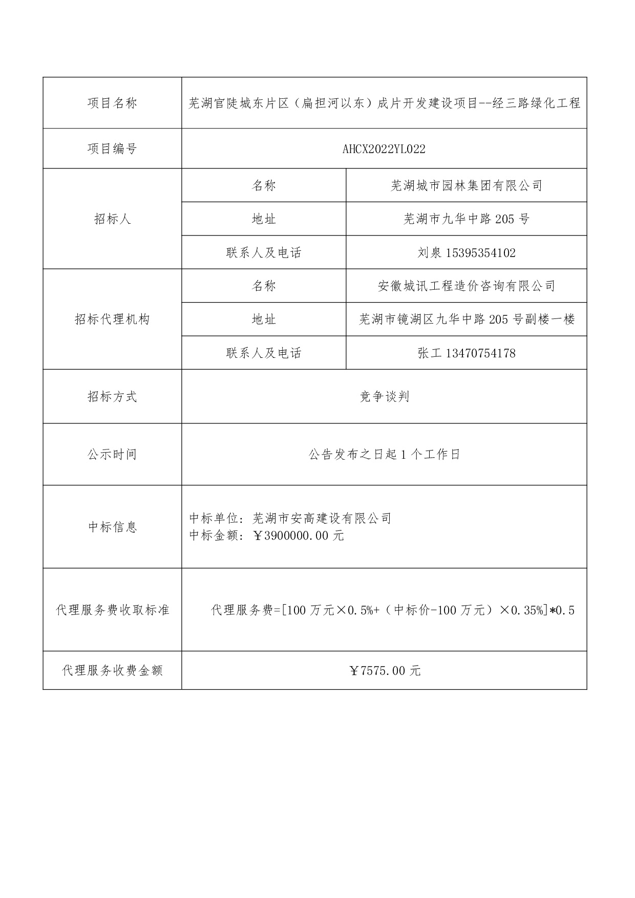 蕪湖官陡城東片區(qū)(扁擔(dān)河以東)成片開發(fā)建設(shè)項目--經(jīng)三路綠化工程中標(biāo)結(jié)果...