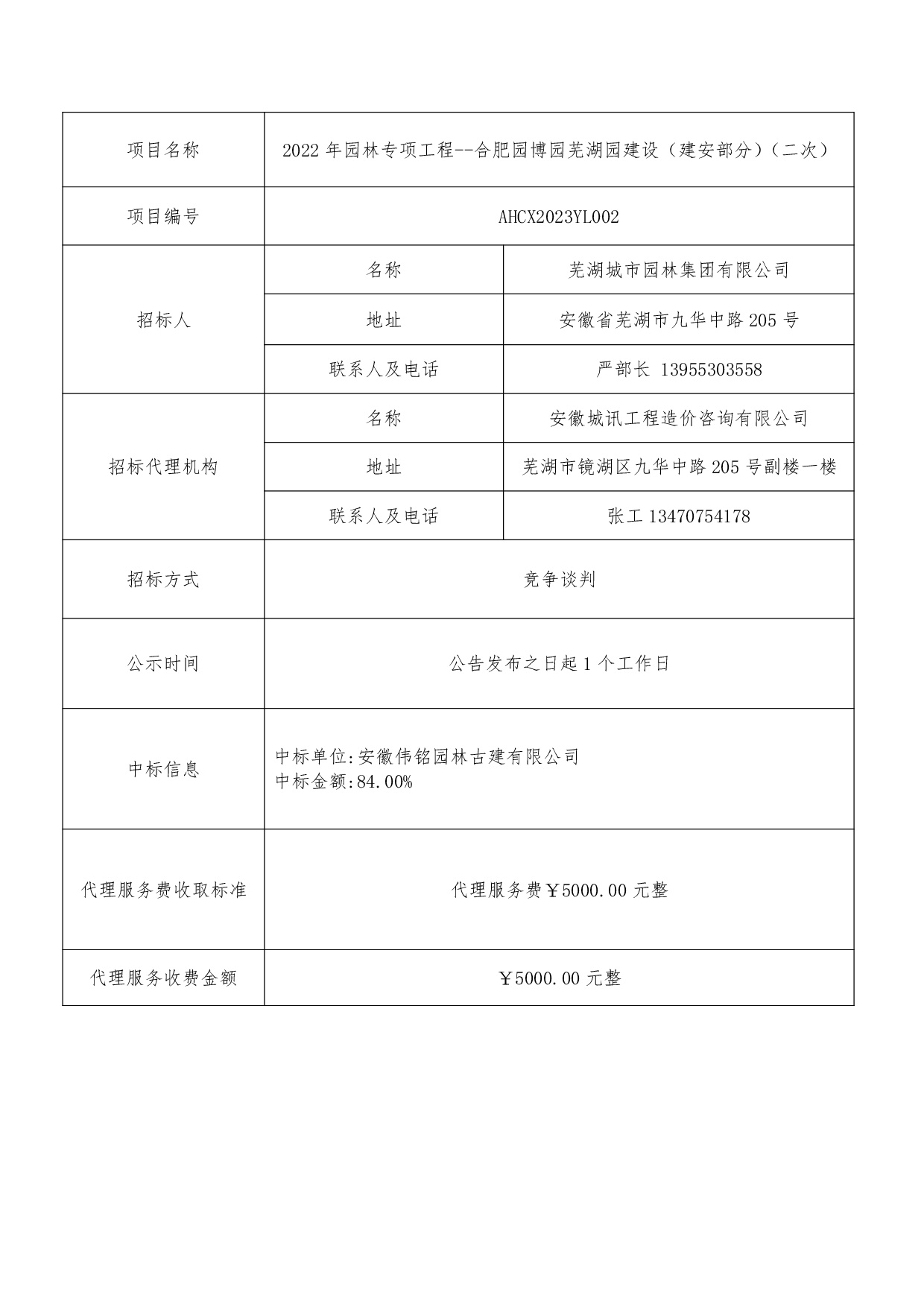 2022年園林專項工程--合肥園博園蕪湖園建設(shè)(建安部分)(二次)中標(biāo)結(jié)
