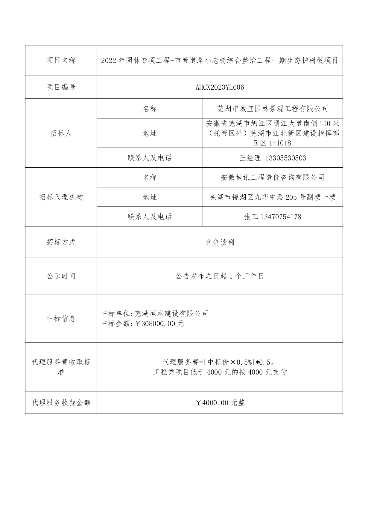 2022年園林專項(xiàng)工程-市管道路小老樹綜合整治工程一期生態(tài)護(hù)樹板項(xiàng)目中標(biāo)...