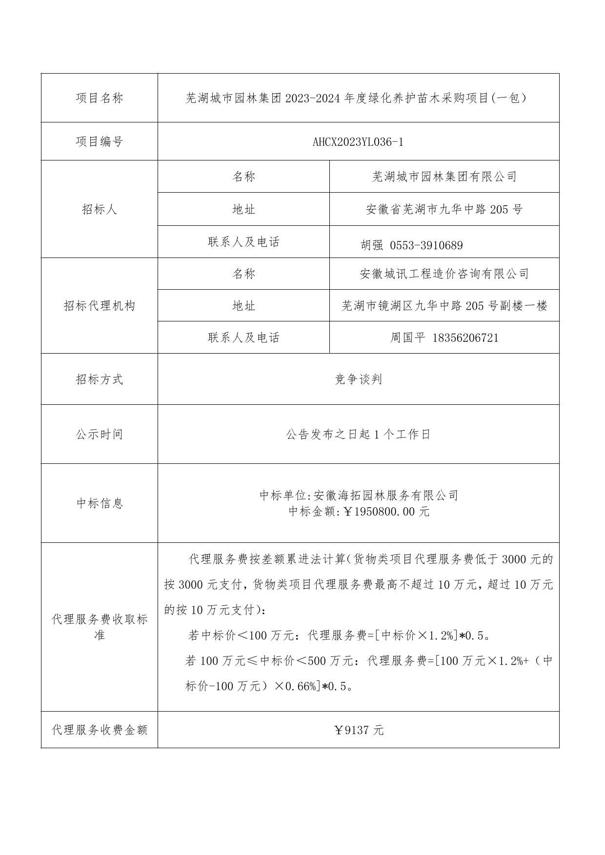 蕪湖城市園林集團2023-2024年度綠化養(yǎng)護苗木采購項目(一包)中標(biāo)結(jié)