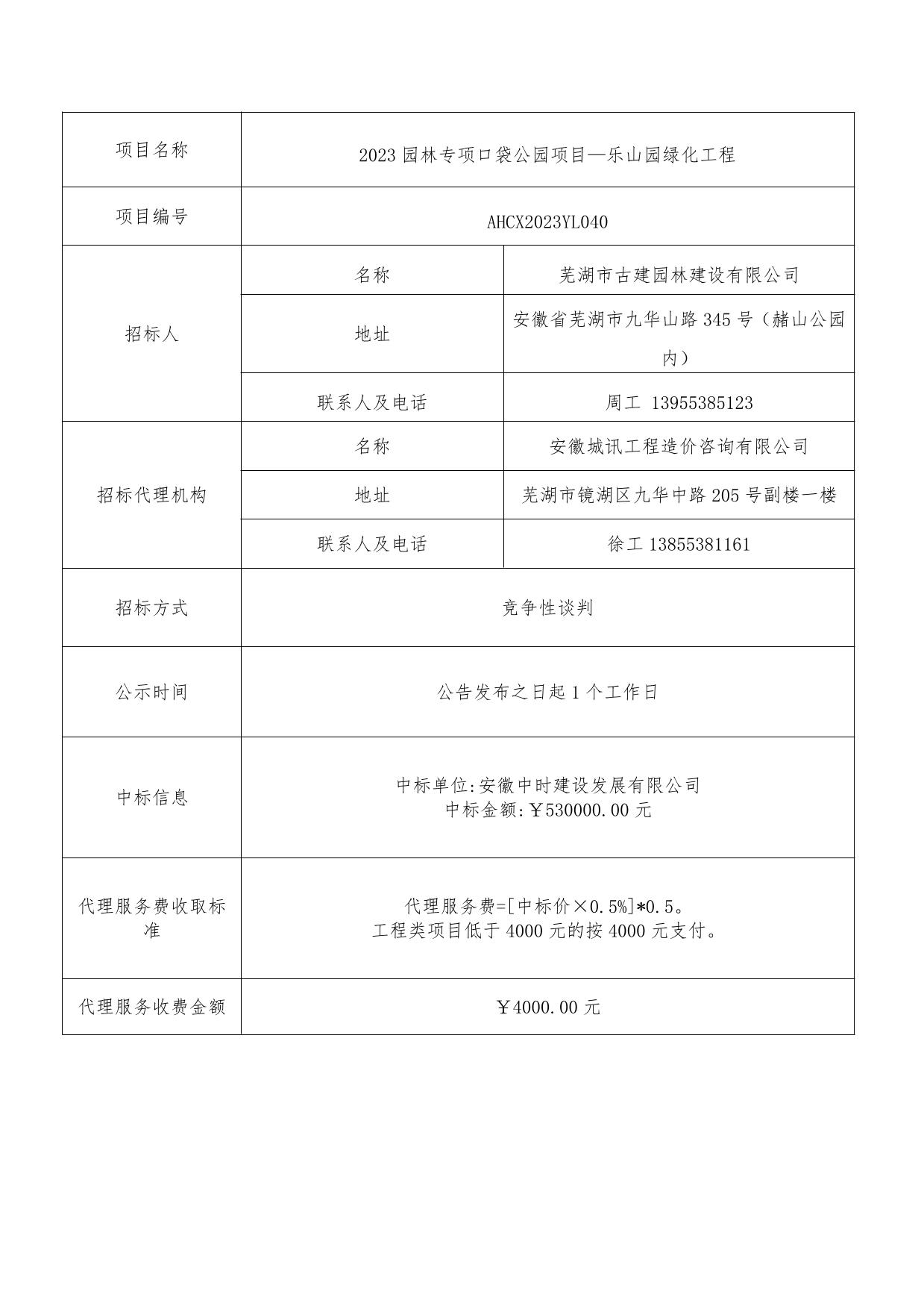 2023園林專項(xiàng)口袋公園項(xiàng)目—樂山園綠化工程中標(biāo)結(jié)果公示