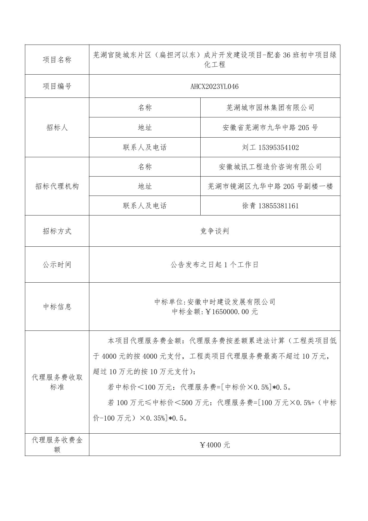 蕪湖官陡城東片區(qū)(扁擔河以東)成片開發(fā)建設項目-配套36班初中項目綠化工...