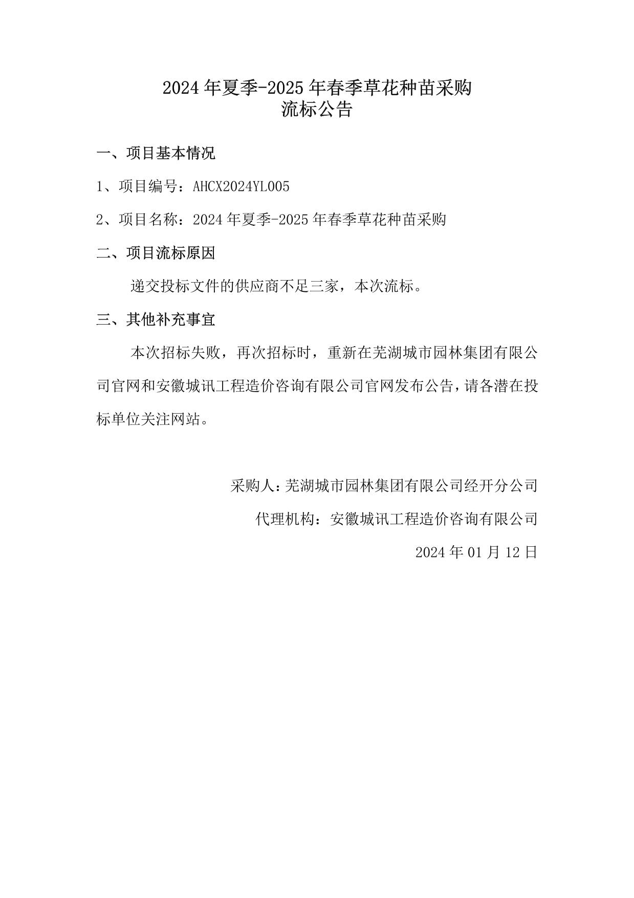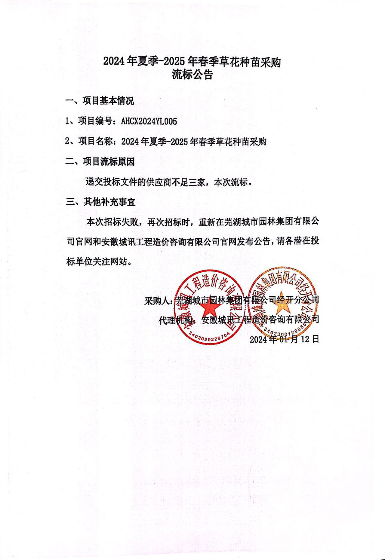 2024年夏季-2025年春季草花種苗采購流標(biāo)公告