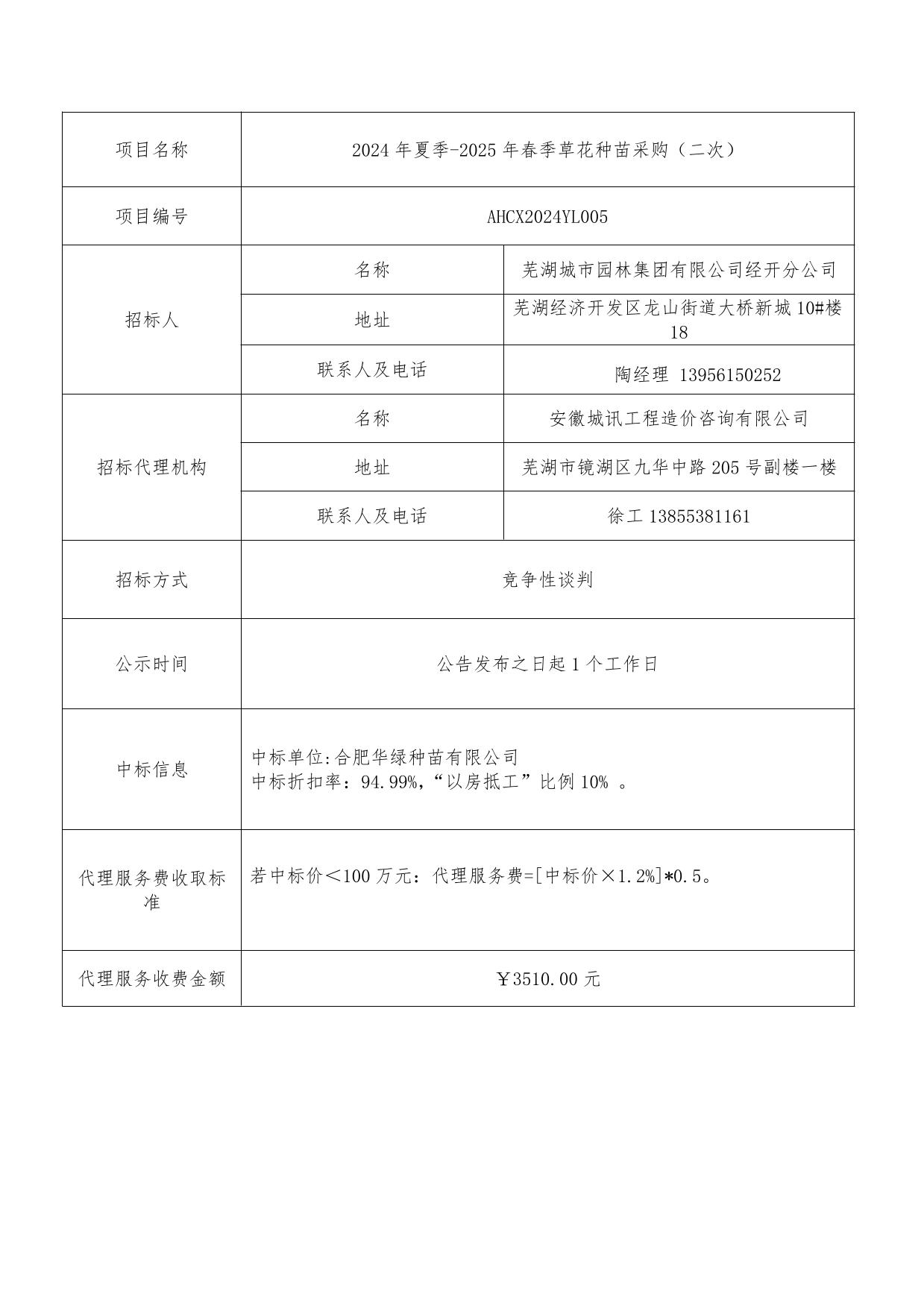 2024年夏季-2025年春季草花種苗采購(二次)成交結(jié)果公告