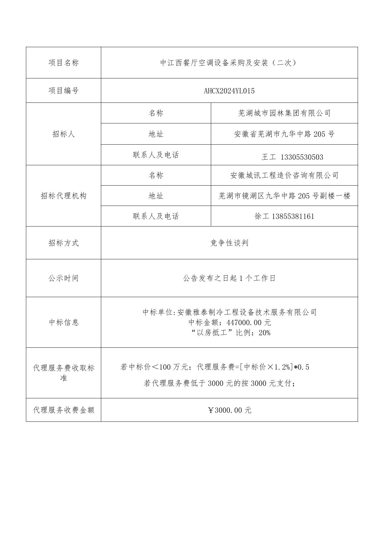 中江西餐廳空調(diào)設(shè)備采購(gòu)及安裝(二次)成交結(jié)果公告